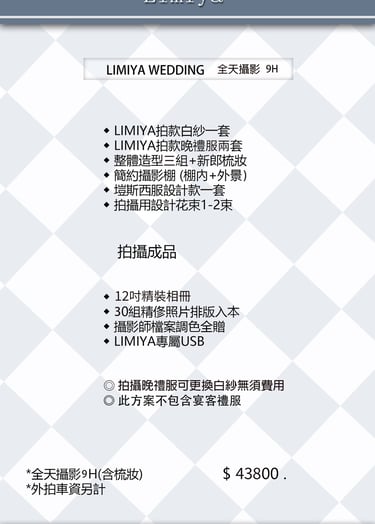 ◎內棚+外景全天拍攝9h (含梳妝車程)